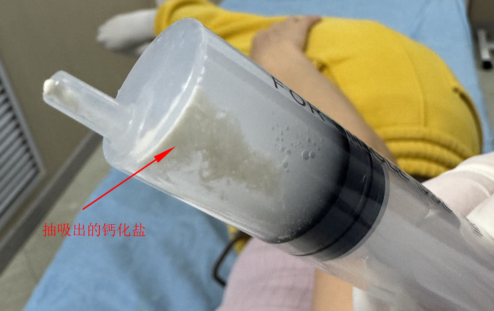 - 靶向清除钙化物:通过 22G 穿刺针直达钙化灶中心,先负压抽吸牙膏状 / 泥沙样钙化物,再用 无菌生理盐水反复灌注抽吸,钙化物清除率达 85%-90%,从根源消除致炎源;